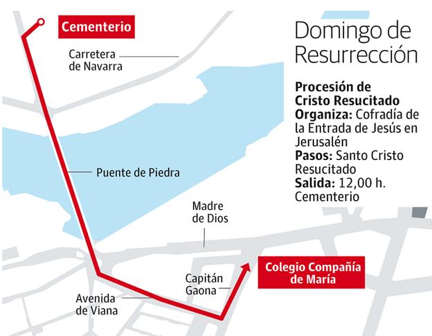 Al término de la misa, a las 12,00 horas, salida desde el Camposanto con el recorrido: Carretera de Navarra, Puente de Piedra, Avenida de Viana y Capitán Gaona hasta el colegio de la Compañía de María, donde concluye tanto el recorrido de esta procesión como la Semana Santa 2026 en la Ciudad de Logroño.