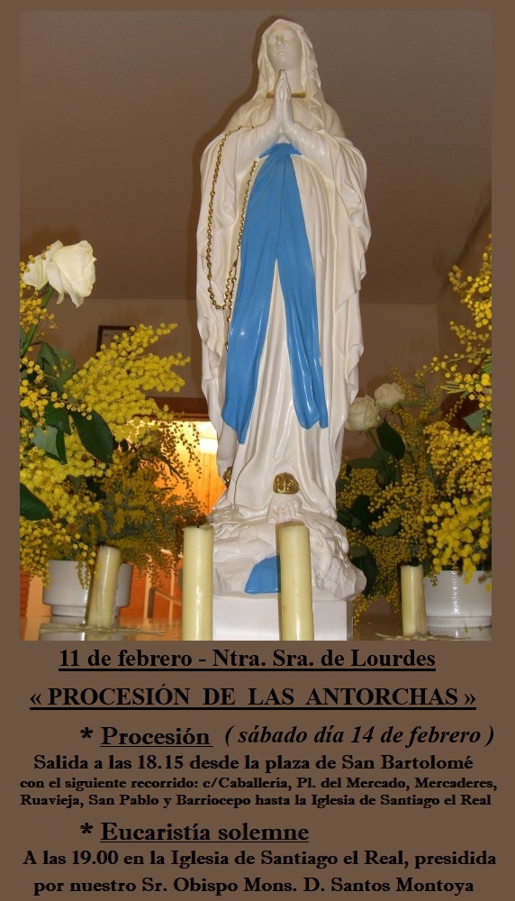 La Iglesia celebra el 11 de febrero, la Festividad de Nuestra Señora la Virgen de Lourdes, por ser el día de la primera aparición de la Virgen, en la localidad francesa de Lourdes.
